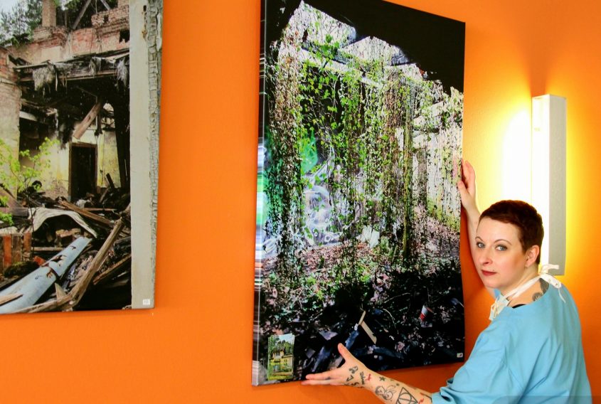 Walla, die in Osnabrück aufgewachsen ist, hegt eine große Leidenschaft für Fotografie und zeigt in ihrer Ausstellung „Orte ohne Menschen – Rückkehr der Natur“ vom Menschen geschaffene Plätze, die schon lange nicht mehr ihre eigentliche Funktion erfüllen. Ganz im Gegenteil: Die Bilder machen deutlich, wie schnell doch der Verfall einsetzt und gleichzeitig die Rückeroberung der Natur beginnt. „Die verschiedenen Stadien der Renaturierung, also dieser Rückkehr der Natur, möchte ich mit meinen Bildern dokumentieren und dem Betrachter vor Augen führen“, erläutert die Fotografin Walla. „Besonders gern fotografiere ich alte Krankenhäuser, die langsam verfallen. Denn es ist unheimlich spannend, sich auf alte Spurensuche zu begeben und nie genau zu wissen, was einen dort erwartet. Dafür bereise ich ganz Deutschland oder mache auch Fotoexpeditionen ins Ausland“, berichtet Walla mit leuchtenden Augen.