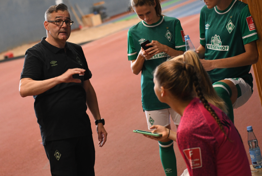 Heute ist der 58-Jährige, neben der Arbeit als Praxismanager des sportmedizinischen Zentrums, Ansprechpartner für alle Fragen rund um das medizinische Wohl der Profi-Frauen des SV Werder und auch für die Betreuung der Spielerinnen im Nachwuchs-Leistungszentrum – die U15, U17 und die zweite Frauenmannschaft zuständig. Als Bindeglied zwischen den Sportlerinnen, den Trainern, den Physiotherapeutinnen, Sportwissenschaftlern und Athletiktrainern berät er nicht nur, sondern behält zum Beispiel auch die termingerechte Durchführung der Sporttauglichkeitsuntersuchungen, regelmäßige Blutuntersuchungen, Vitamin- und Elektrolytbestimmungen und vieles mehr im Blick bis hin zur Einhaltung der Hygiene-Vorschriften der DFL und DFB. „Frauenmannschaften in der Bundesliga haben häufig keinen eigenen Mannschaftsarzt auf dem Platz, wie das bei den Männern üblich ist”, beschreibt Dr. Diehl die Situation. „Die Betreuung übernehmen Physiotherapeuten, ich bin so oft es geht, bei Heimspielen dabei und unterstütze die Mannschaft, wo es geht.” Und da kann es auch schon einmal vorkommen, dass neben der medizinischen Betreuung ein aufbauendes und Mut machender Satz nach einer Niederlage ein Pflaster für die Seele ist. „Und auch dafür bin ich gern zuständig”, schmunzelt Dr. Diehl.