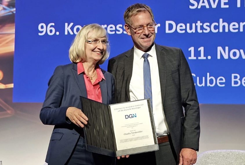 Prof. Trenkwalder wird seit Jahren für ihr außerordentliches Engagement in der Neurologie sowie für ihren großen klinischen und berufspolitischen Einsatz hoch geschätzt. Die international renommierte Parkinson-Expertin gilt als Pionierin in der Erforschung des Restless Legs Syndroms (RLS) und ist Gründungsmitglied der European RLS Study Group sowie der Deutschen Restless Legs Vereinigung. Unter ihrer Federführung erschien in diesem Jahr die vollständig überarbeitete Leitlinie zum Restless Legs Syndrom der DGN und der Deutschen Gesellschaft für Schlafforschung und Schlafmedizin.