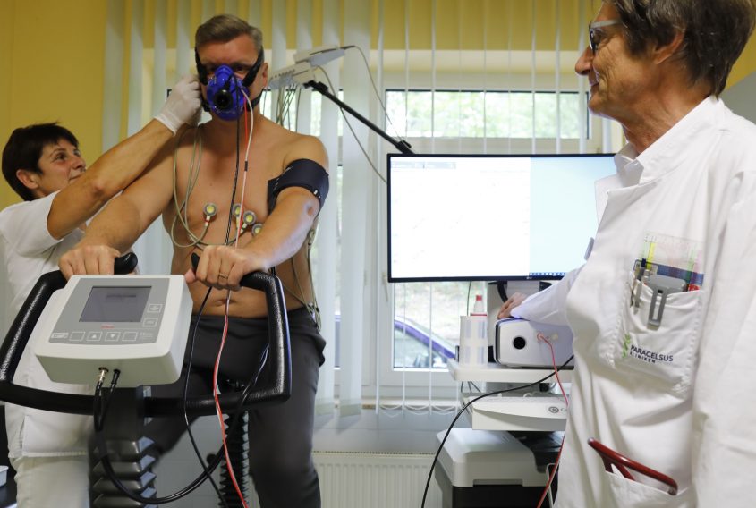 Die Paracelsus Kliniken haben in ihren Reha-Einrichtungen frühzeitig auf das Phänomen Long Covid reagiert. Bestes Beispiel dafür ist die Paracelsus Harzklinik Bad Suderode. Die Klinik gehörte Anfang des Jahres 2021 zu den wenigen somatischen Rehakliniken in Deutschland, die sich frühzeitig auf die interdisziplinäre Anschlussheilbehandlung von Covid-19-Erkrankten eingestellt hatten. Schon damals wurden an der Rehabilitationsklinik, die sich unter anderem auf Atemwegserkrankungen spezialisiert hat, Zustände diagnostiziert, die von Viruserkrankungen so bisher nicht bekannt waren. „Wir haben hier ein Jahr lang fast täglich medizinisches Neuland betreten”, erklärt Dr. med. Stefan Schwarz, Chefarzt der Pneumologie in Bad Suderode. Besonders häufig beobachteten die Mediziner auch neurologische und kognitive Ausfälle mit Langzeitfolgen. Mittlerweile hat die Klinik ihr Therapiespektrum Stück für Stück erweitert und ein differenziertes Konzept entwickelt.