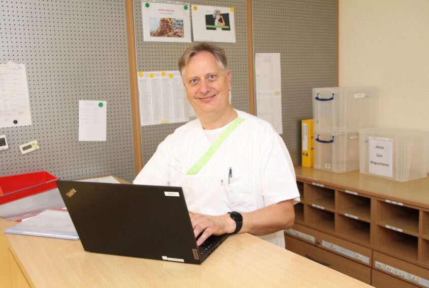 Das Pflegeteam setzt sich aktuell beinahe exakt zur Hälfte aus langjährigen Mitarbeitern und aus Mitarbeitern zusammen, die innerhalb dieses Jahres hier gestartet sind. Damit haben wir aus meiner Sicht eine perfekte Mischung aus Erfahrung und neuen Blickwinkeln. Dieses Potential haben wir bislang noch nicht in voller Höhe ausgeschöpft. Jedoch haben wir Mitte Juni mit zusätzlichen Team-Sitzungen begonnen, um so strukturiert den Wissensaustausch zu fördern und dadurch Prozesse verbessern zu können. Mein Ziel ist es, das Spezialisten-Wissen, das einzelne Pflegekräfte haben, ins gesamte Team zu bringen. Außerdem werden wir neue Ideen mit gemachten Erfahrungen abgleichen, um Prozesse weiter zu verbessern und den Zusammenhalt im Team noch weiter zu stärken. Bei all dem möchte ich auch, dass digitale Lösungen immer mehr in den Alltag integriert werden, um so noch mehr Zeit für unsere Patienten zu gewinnen.