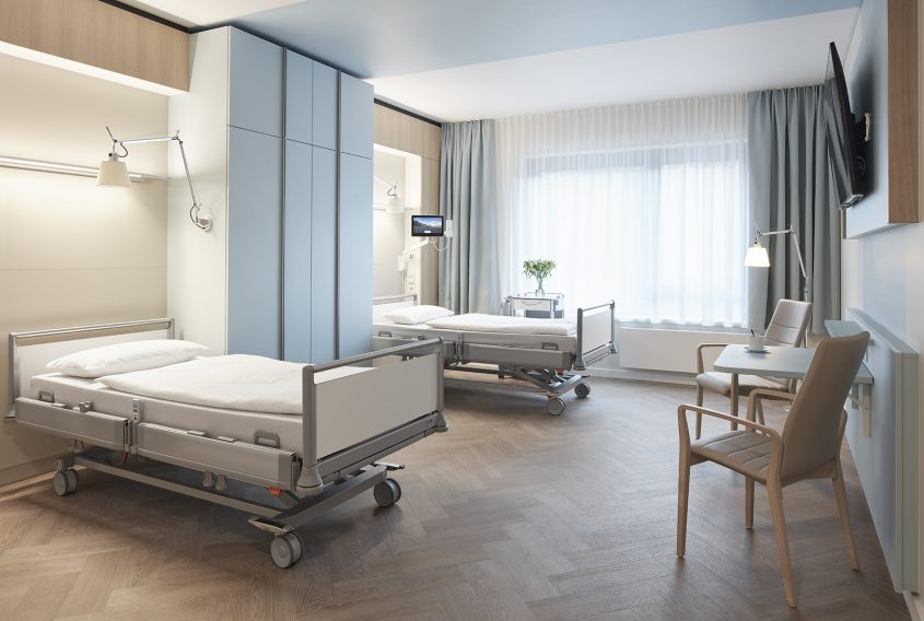 Bei der Innenraumgestaltung hat man viel Wert auf wohnliche Gestaltung gelegt. Großzügig dimensionierte Fensterfronten, eine ansprechende Farbgebung, eine an Hotelstandards orientierte Ausstattung und Möblierung tragen dazu bei. Auch Aufenthaltsräume für Angehörige wurden geschaffen, denn „manchmal ist es aus medizinischen Gründen erforderlich, dass der Partner, den stationären Aufenthalt begleitet“, erklärt Prof. Trenkwalder.