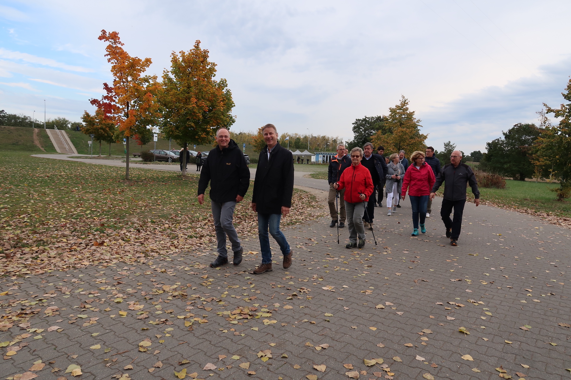 Nach den Grußworten und einem kleinen Imbiss ging es auf einen Rundkurs von ca. drei Kilometern Länge. Höhepunkt und Abschluss der Wanderung war die Besteigung des Aussichtturmes am Wasserstraßenkreuz Hohenwarthe, die der Bürgermeister der Gemeinde Möser Bernd Köppen den Teilnehmern ermöglichte.