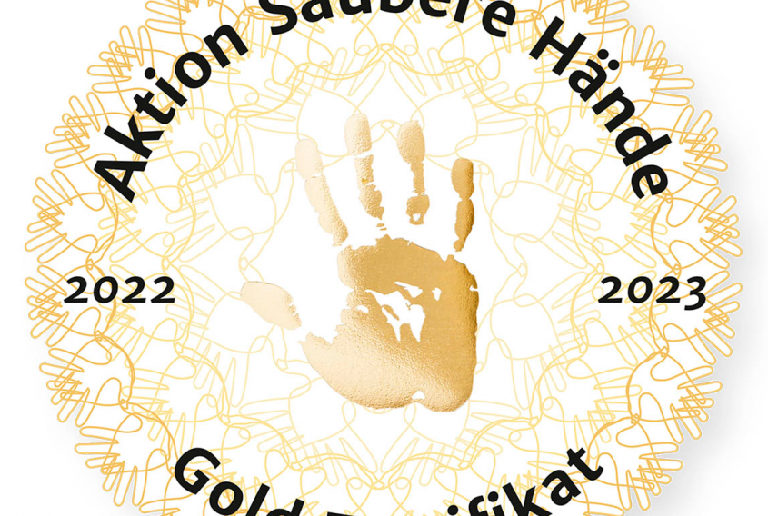 Die „Aktion Saubere Hände“ ist eine nationale Kampagne zur Förderung der Händedesinfektion in deutschen Gesundheitseinrichtungen. Ihr Ziel ist die Etablierung und Verbesserung der hygienischen Händedesinfektion in allen Einrichtungen des Gesundheitswesens. Die Aktion zeichnet Gesundheitseinrichtungen, die sich besonders intensiv um die Händehygiene bemühen, mit Zertifikaten in den Klassen Bronze, Silber und Gold aus. Um ein Zertifikat zu erreichen, müssen die Krankenhäuser strenge Kriterien erfüllen, die vom Aktionsbündnis vorgegeben werden. Voraussetzungen sind unter anderem regelmäßige Hygieneschulungen der Mitarbeiterinnen und Mitarbeiter, die Etablierung einer Lenkungsgruppe Hygiene und eine entsprechende Ausstattung mit Desinfektionsspendern, um einen effektiven Desinfektionsmitteleinsatz zu gewährleisten. Im Rahmen der Zertifizierung wird dokumentiert, wie hoch der Desinfektionsmittelverbrauch ist und wie gut die Mitarbeiterinnen und Mitarbeiter einer Klinik auf den Intensiv- und Normal-Stationen in der Alltagsroutine mit der Händehygiene umgehen. Diese so genannten Compliance-Beobachtungen (mindestens 200 auf jeweils 3 Stationen sind erforderlich) werden bei spontanen Terminen durch Mitarbeiterinnen und Mitarbeiter der Klinikhygiene genutzt, um die fünf Indikationen der Händehygiene per App und Tablet zu protokollieren: vor dem Patientenkontakt, vor einer aseptischen Tätigkeit, nach Kontakt mit potenziell infektiösem Material, nach Patientenkontakt und nach der unmittelbaren Patientenumgebung. „Das ist eine sehr anspruchsvolle Tätigkeit“, bestätigt Dr. Karolin Graf. „Das ‚Gold Zertifikat‘ unterstreicht die hervorragende Betreuung und fachliche Kompetenz unseres Hygiene-Teams, allen voran durch unsere Hygienefachkraft in der Pflege, Helene Vespermann, die hier seit mehr als 26 Jahren im Einsatz ist. Wir freuen uns sehr über das Zertifikat des Aktionsbündnisses und sehen es als Bestätigung für eine optimale hygienische Betreuung unserer Patienten.“