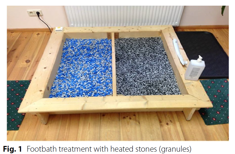 In der aktuellen Studie aus der Paracelsus Reha Klinik Bad Suderode wurde die Therapie mit erwärmten Granulatsteinen, bei der Patienten ein 20-minütiges Fußbad mit Steinen unterschiedlicher Größe erhalten und ihre Füße gleichmäßig bewegen, mit der klassischen Therapie des Vierzellenbads verglichen. Das Ergebnis: Beide Behandlungsmethoden führten zu signifikanten Verbesserungen der Symptome, jedoch zeigte sich die Behandlung mit erwärmten Granulatsteinen als überlegen.