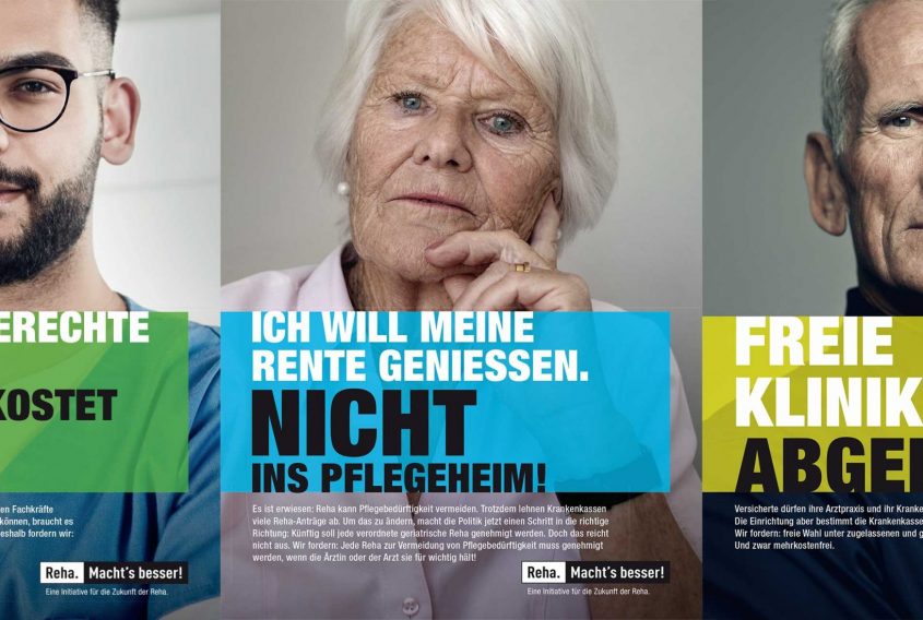 Lange Zeit war die Rehabilitation das Stiefkind der Gesundheitspolitik. Reha-Einrichtungen, verordnende Ärztinnen und Ärzte und nicht zuletzt die Patientinnen und Patienten – sie alle kämpfen tagtäglich gegen eine Antragswut, unbegründete, intransparente Ablehnungen von Reha-Anträgen und eine zu geringe Vergütung der Reha-Maßnahmen. Nun haben sich verschiedene Rehabilitationseinrichtungen zusammengeschlossen, um mehr Aufmerksamkeit auf die Rehabilitation zu lenken und die Bedingungen zu verbessern. Daraus ist die Kampagne „Reha. Macht’s besser.“ entstanden. Mehr als 250 Reha-Einrichtungen, der BDPK und der Arbeitskreis Gesundheit unterstützen die Kampagne zur Stärkung der Rehabilitation, die gemeinsam mit der Münchener Agentur trio Group entwickelt wurde. Mit einer Kampagnen-Website sowie über Facebook und Twitter soll vor allem die Politik, aber auch eine breite Öffentlichkeit für das Thema sensibilisiert werden. Die zentralen Forderungen der Kampagne sind: