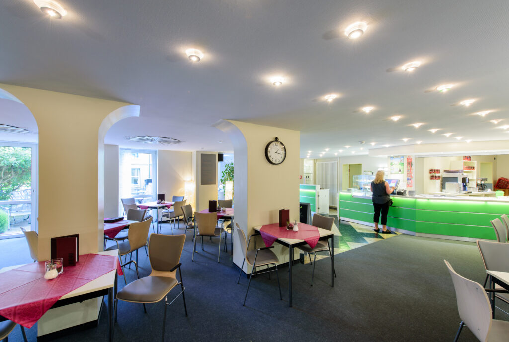 - Cafeteria mit Klinikshop und Sonnenterrasse