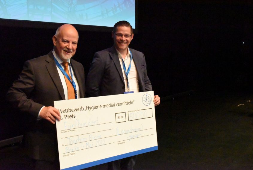 Die Sepsis-Kampagne der Paracelsus Kliniken hat den zweiten Platz beim alljährlichen Wettbewerb „Hygiene medial vermitteln“ der Deutschen Gesellschaft für Krankenhaushygiene gewonnen. Die Auszeichnung wurde während des 16. Kongress‘ der DGKH Anfang Mai in Berlin übergeben.