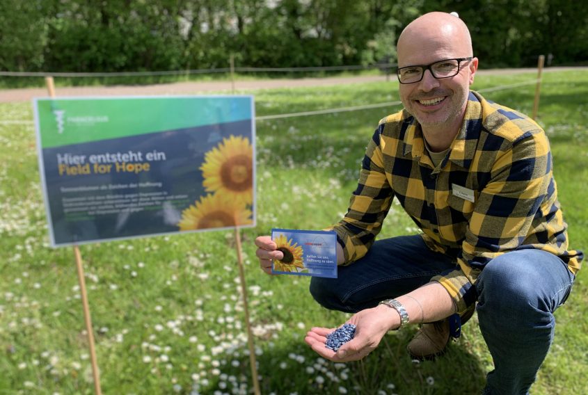 Die Roswithaklinik unterstützt in diesem Jahr zusammen mit dem Bündnis gegen Depressionen in Südniedersachsen die Aktion „Fields For Hope“ und pflanzt zusammen mit Patienten rund 80 Sonnenblumen in „Feldern für die Hoffnung“ vor der Klinik.