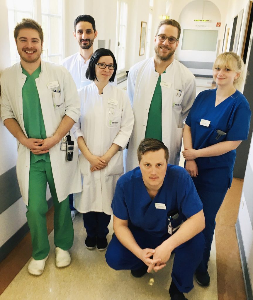 Das Team der Urologen unterstützt sich gegenseitig noch mehr als sonst. Gerade jetzt, wo Kinderbetreuung oder Kurzarbeit für manche Partnerin/manchen Partner schwierige und auch belastende Themen sind, ist der Zusammenhalt groß. Da springt die Kollegin auch mal kurzfristig für den anderen ein oder der Kollege mit einem kleinen Kind muss keine Rufbereitschaft übernehmen. Zwei von unseren Assistenzärzten stehen ganz kurz vor ihrer Facharzt-Prüfung, auch sie kriegen etwas mehr Luft zum Lernen. Trotzdem ist das Arbeitsaufkommen hoch, viele urologische Notfällen werden behandelt, auch deshalb, weil die Ambulanz längere Öffnungszeiten von 7 bis 22 Uhr bzw. am Wochenende von 8 bis 15.30 Uhr anbietet. „Wir sind ein eingespieltes Team – vom Chefarzt, Oberarzt bis zum Assistenzarzt und Pflegepersonal“, sagt Dr. David Schulz, Assistenzarzt, auch er steht kurz vor seiner Facharzt-Prüfung in wenigen Wochen. „Auch die Azubis bei uns sind eine riesige Hilfe. Wir leisten unseren Beitrag in der Corona-Krise und tun jetzt das, wofür wir ausgebildet wurden und wofür wir hier sind: Menschen helfen und Kollegen unterstützen.“